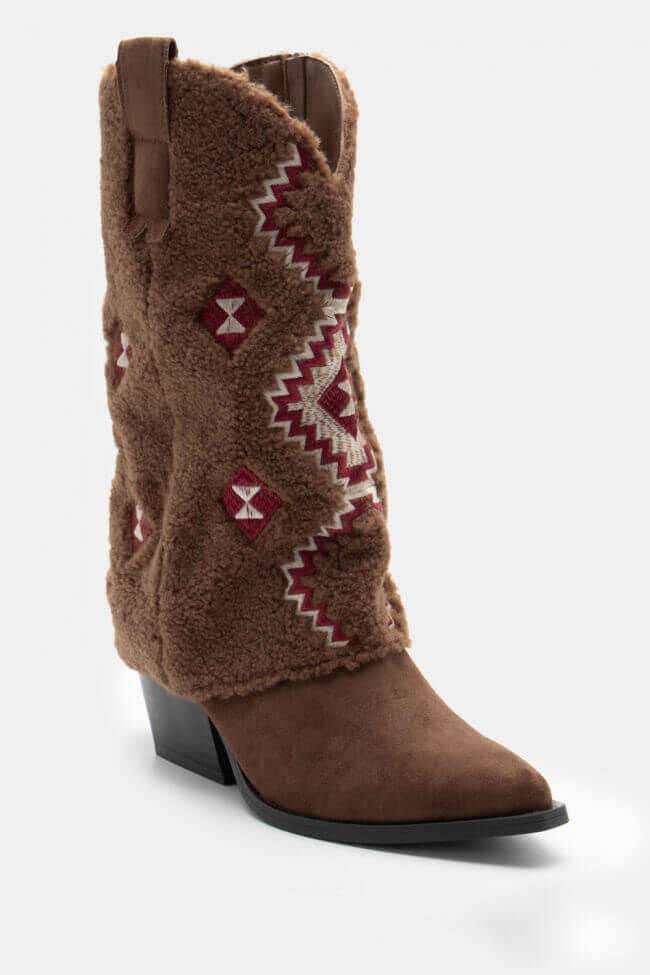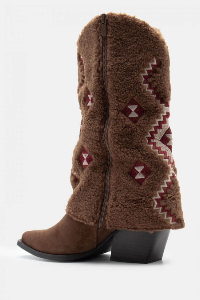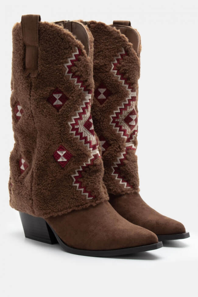 Stivaletti con Fodera Interna in Pelliccia & Ricamo