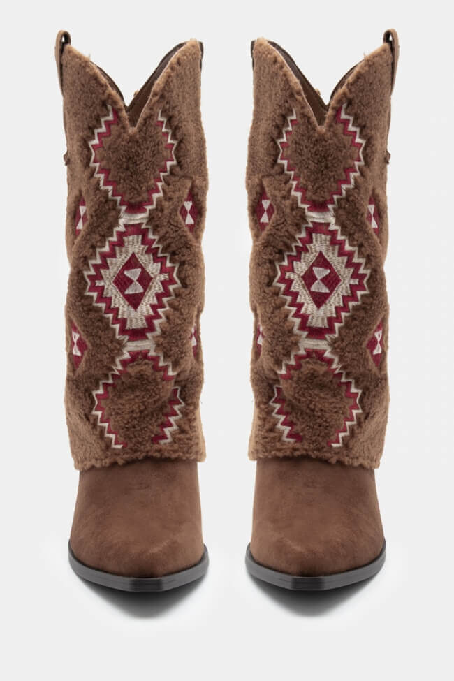 Stivaletti Cowboy con Effetto Risvoltabile & Ricamo