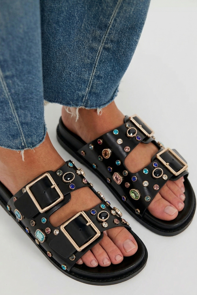 Σανδάλια Flatform με Διακοσμητικές Πέτρες