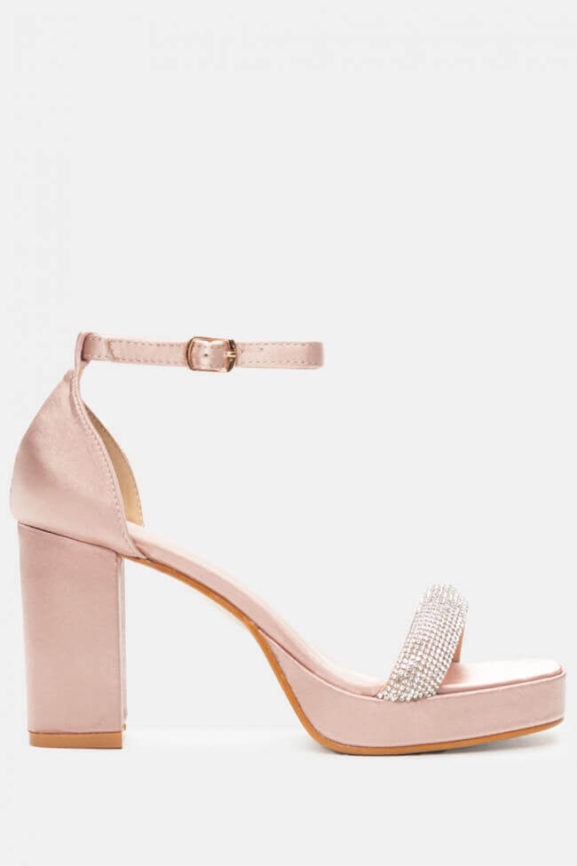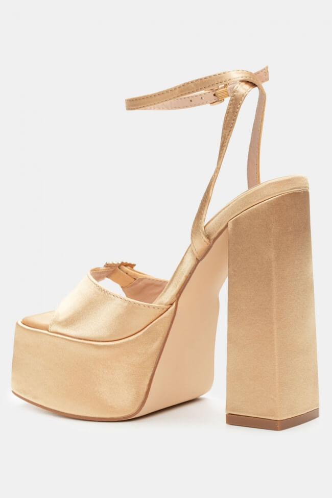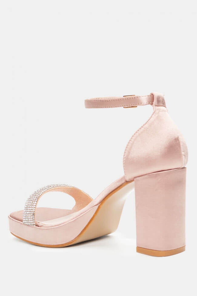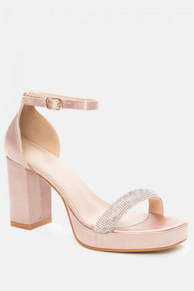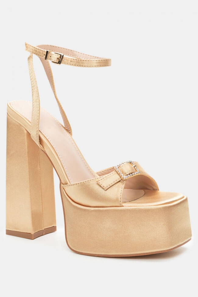 Сатенени сандали с платформа и декоративна катарама от кристали