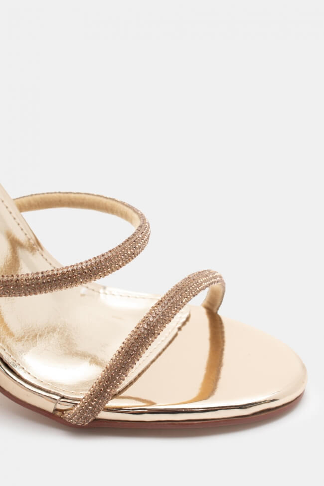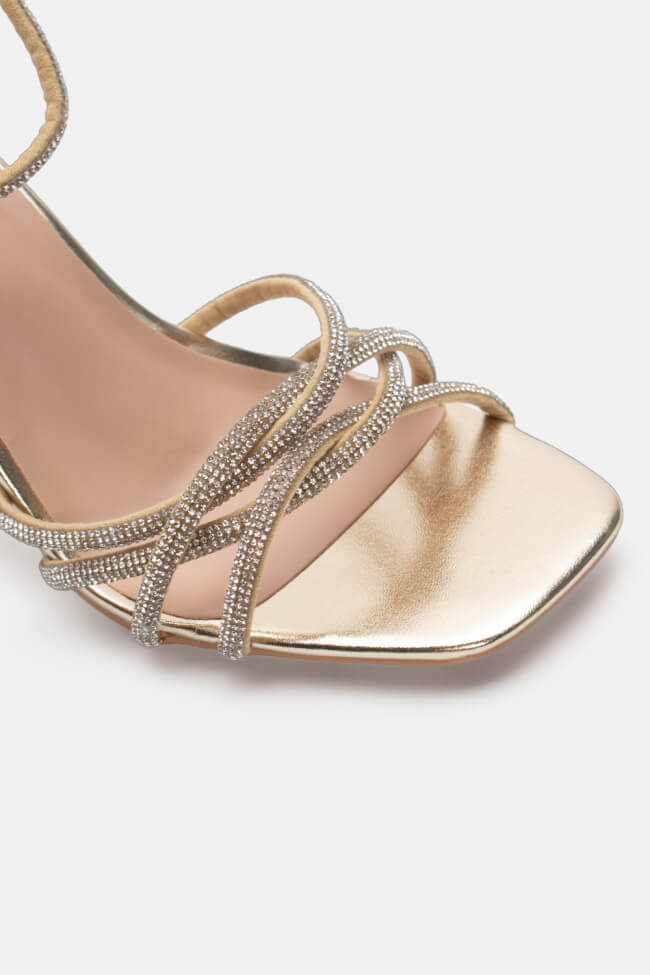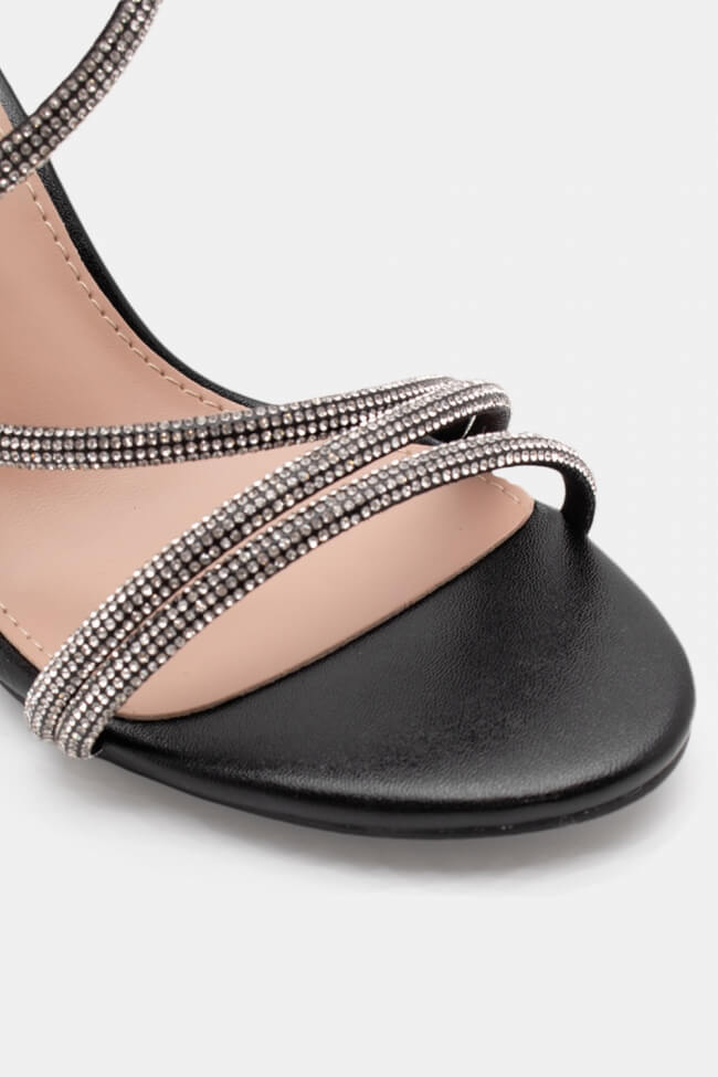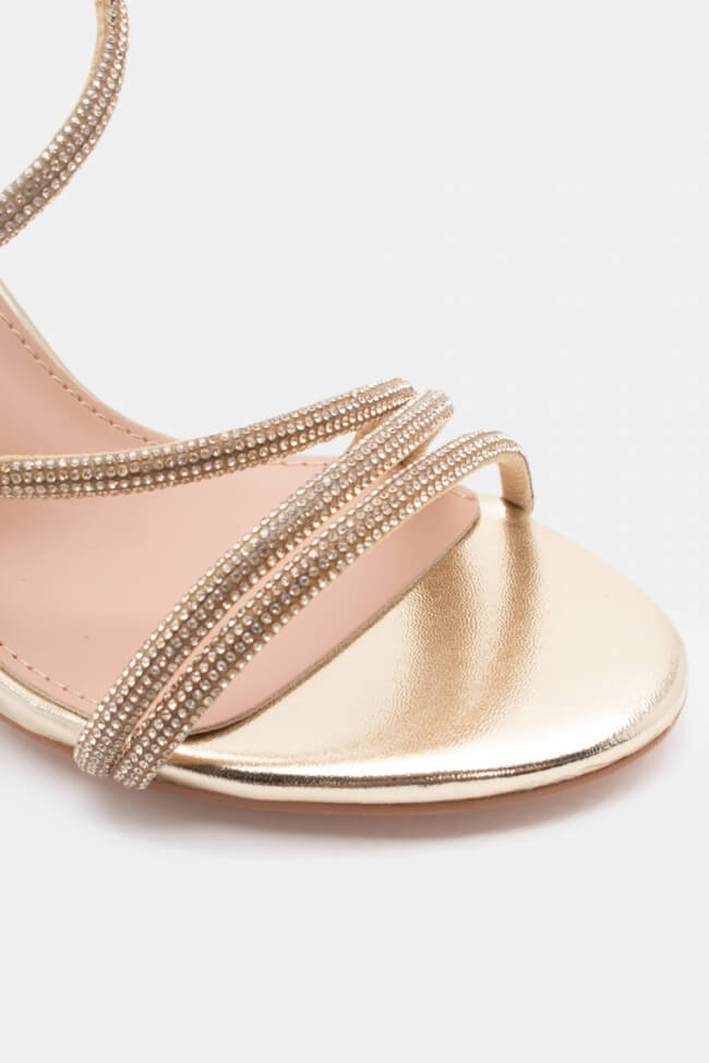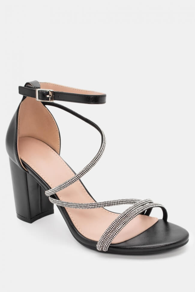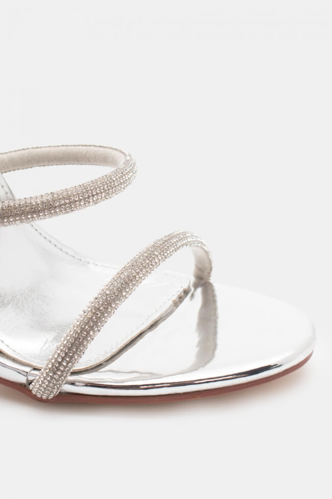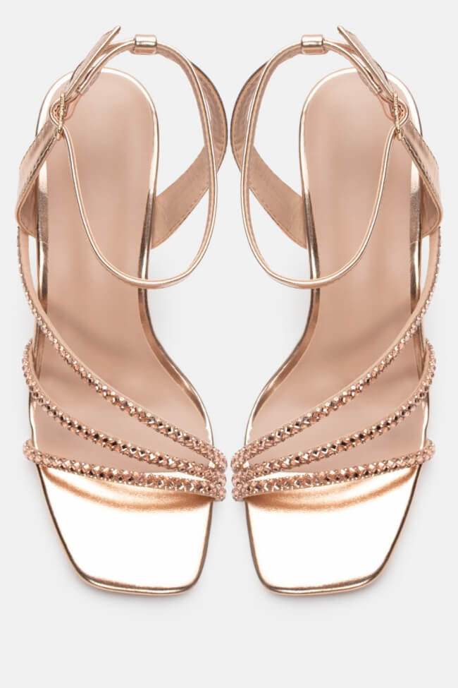 Сандали с диагонални каишки от страс