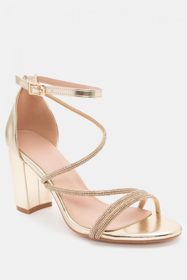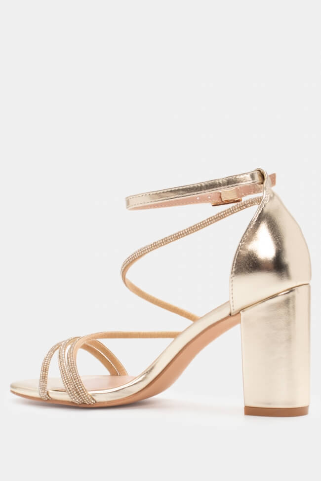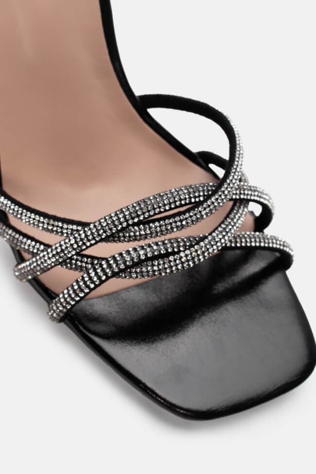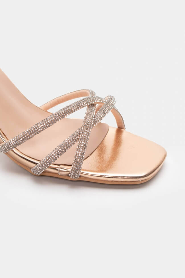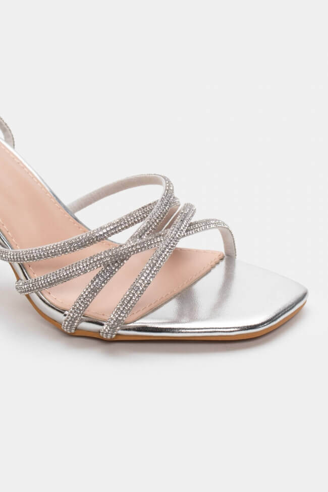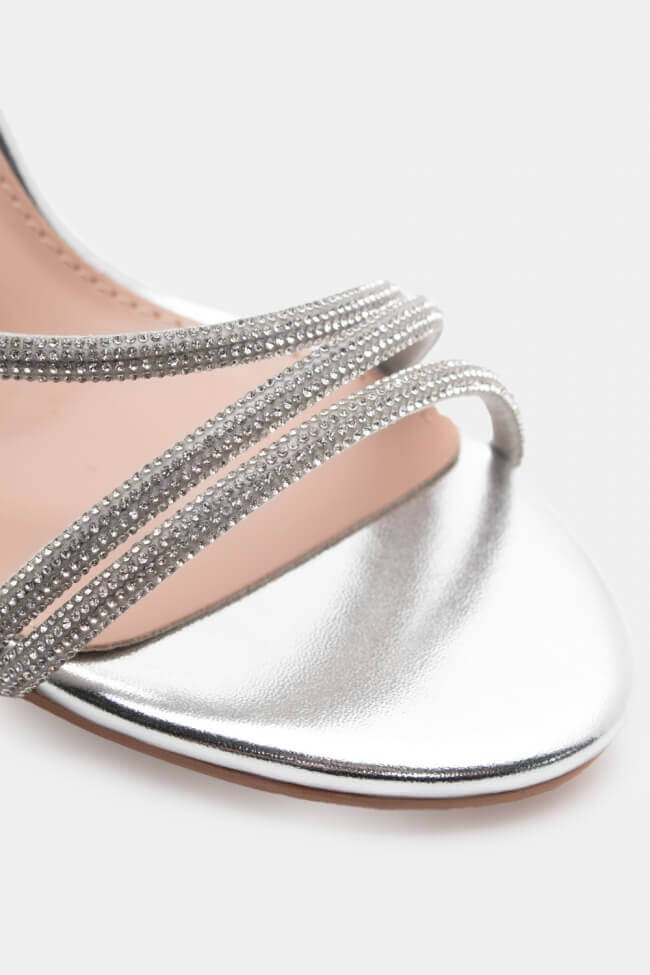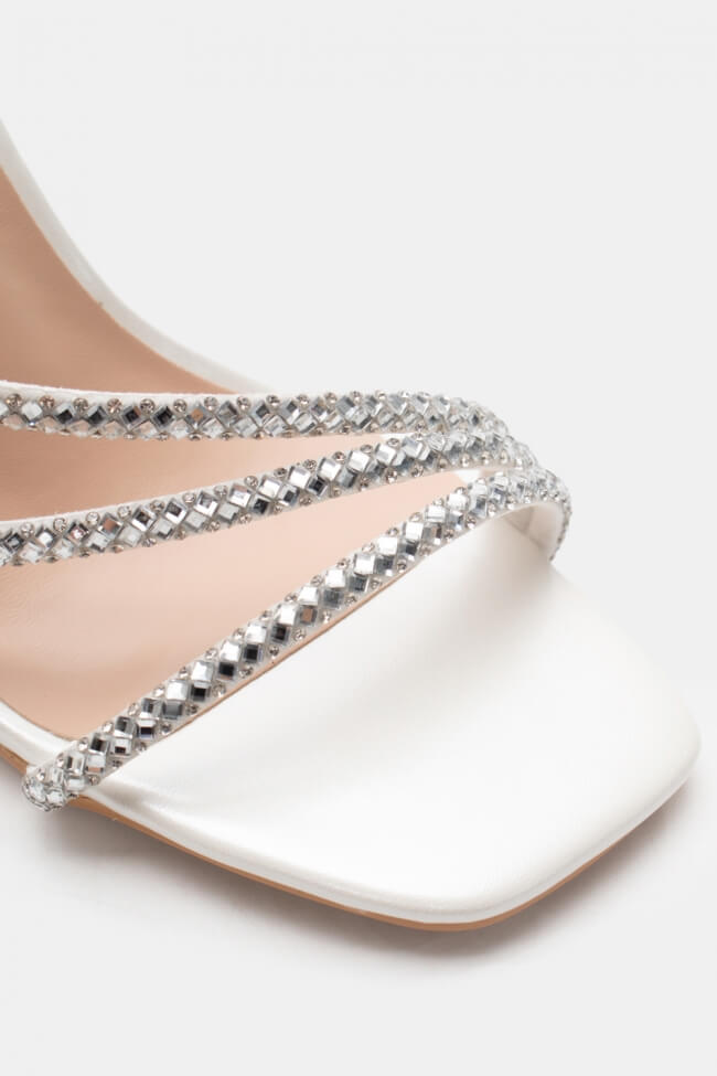 Сандали с диагонални каишки от страс