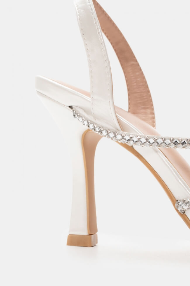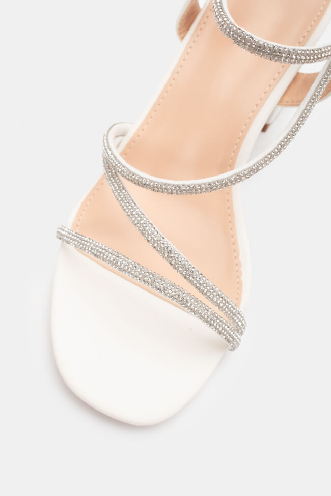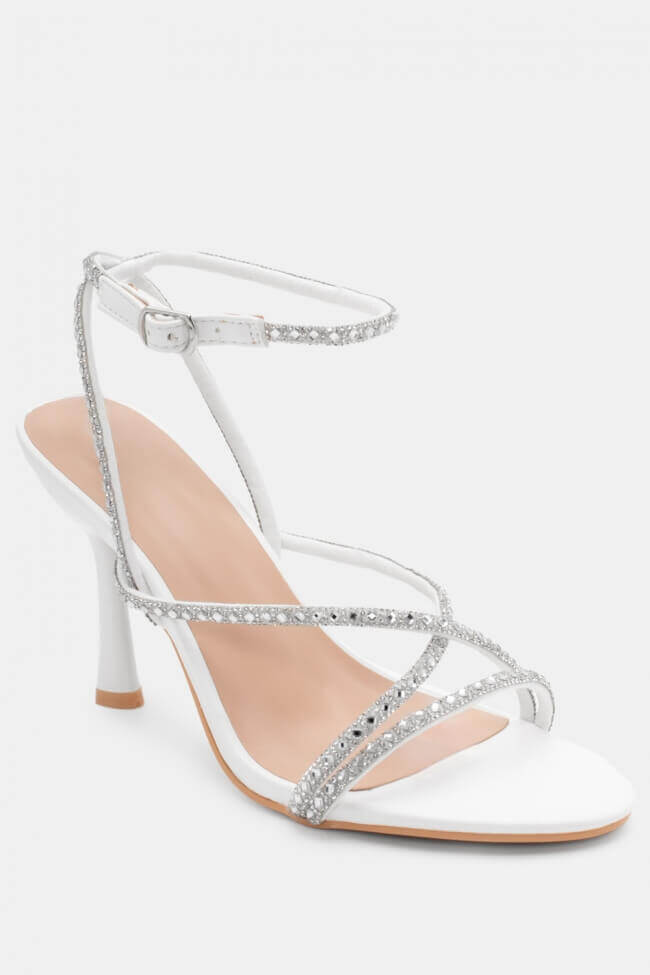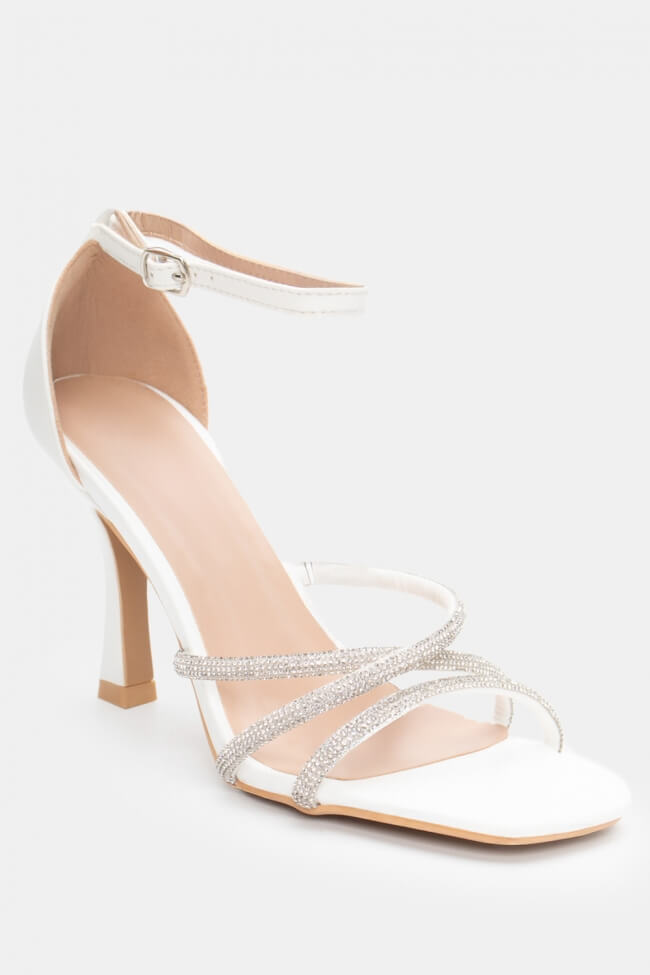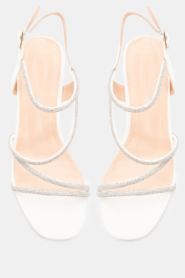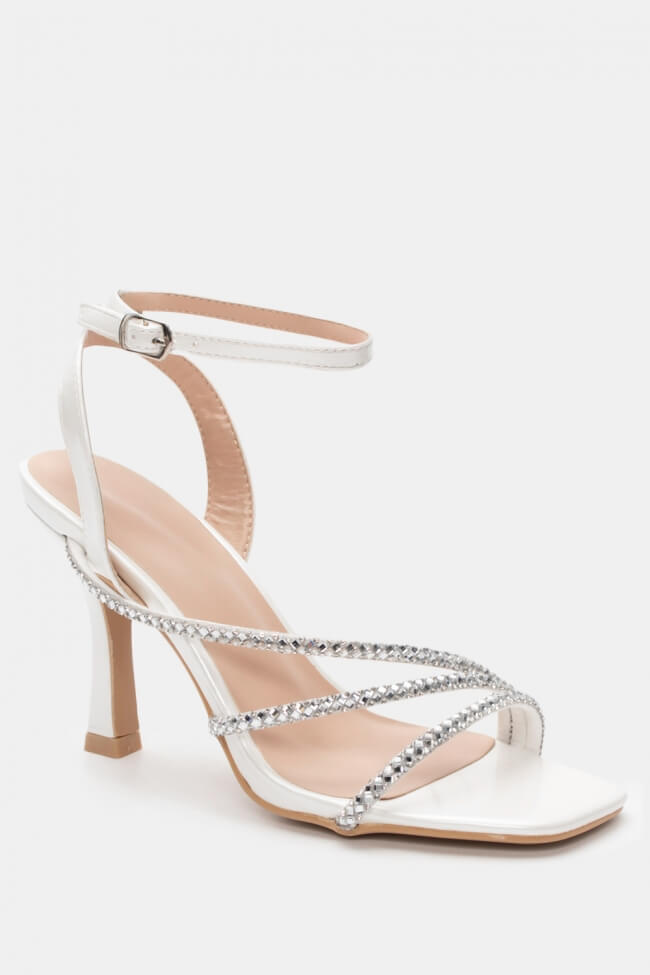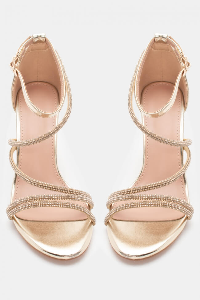 Сандали с диагонални каишки от страс