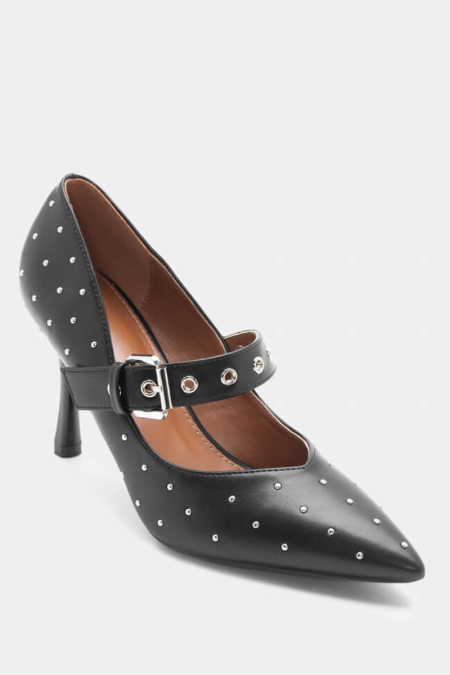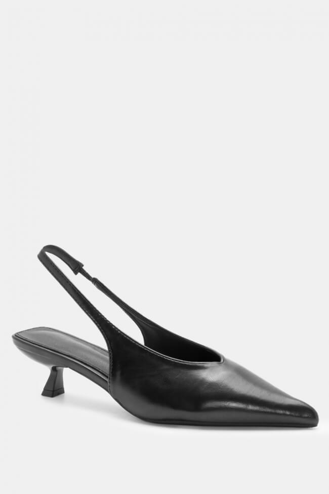 Pointed Toe Slingback Heels with Decorative Buckle & Elastic