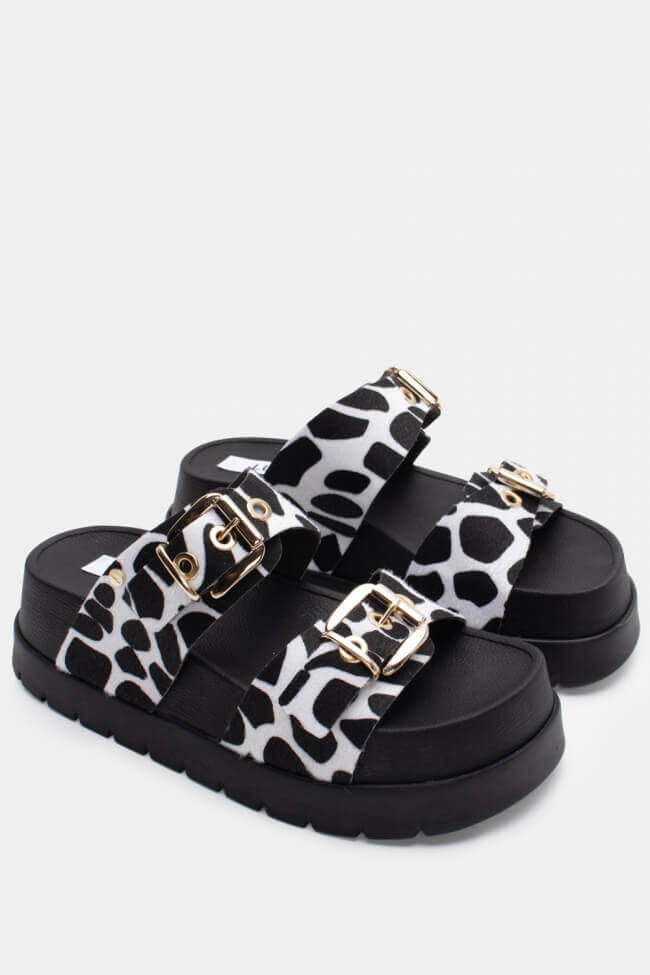 Sandali Flatform con Doppie Fibbie & Borchie
