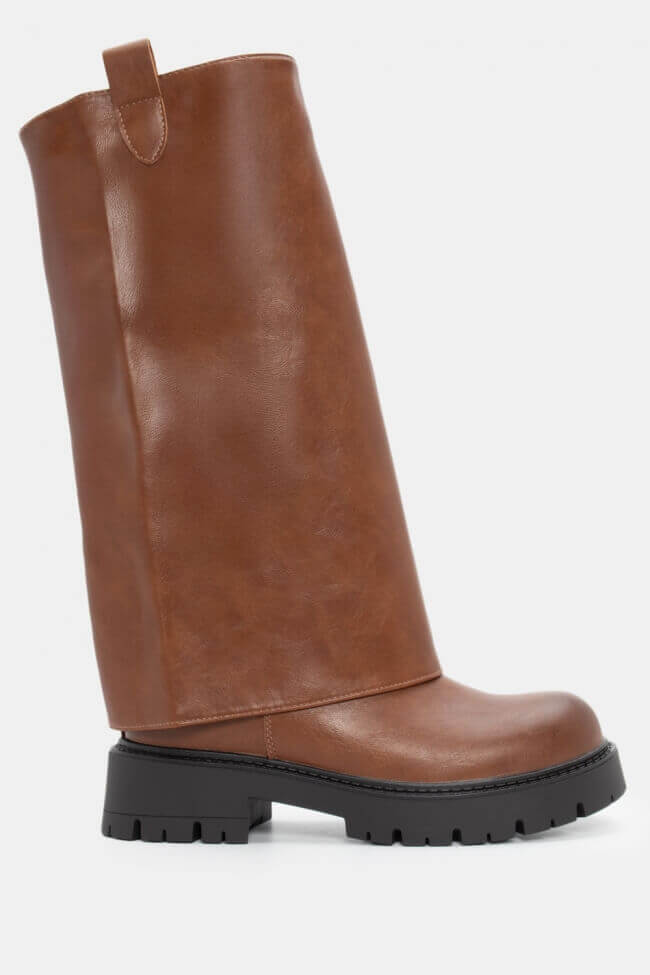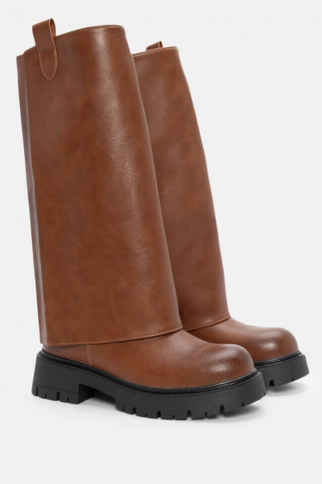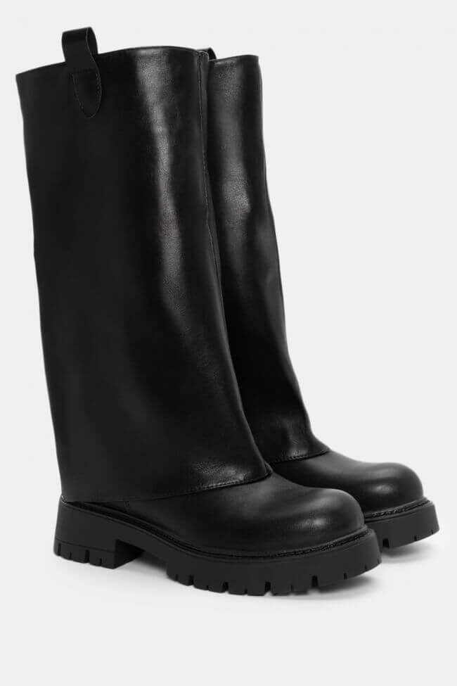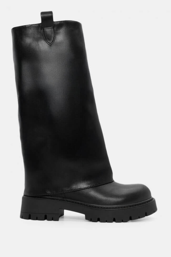 Cizme cu vârf ascuțit cu efect de margine pliată