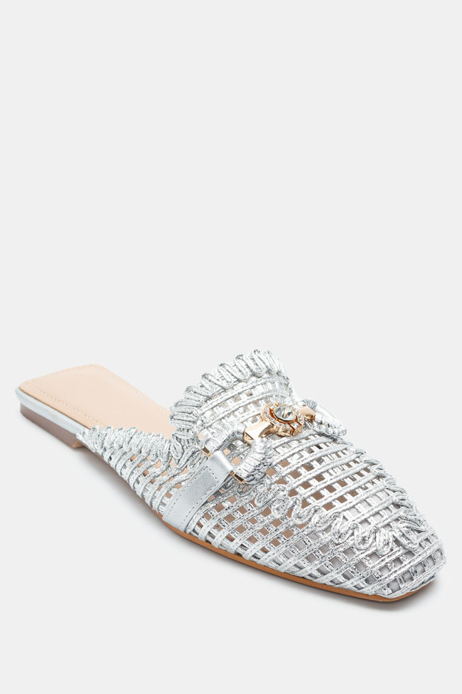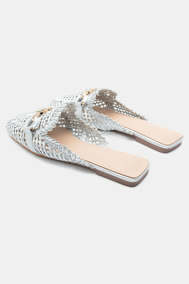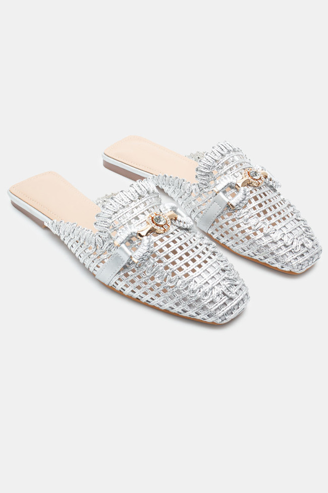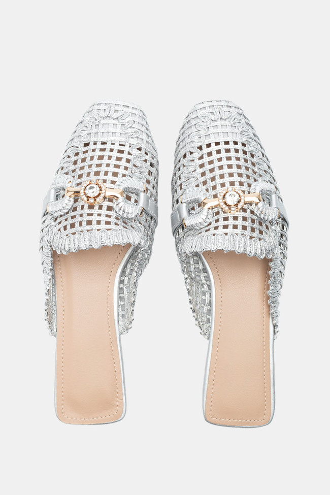 Mules con Paglia & Fibbia Decorativa di Strass