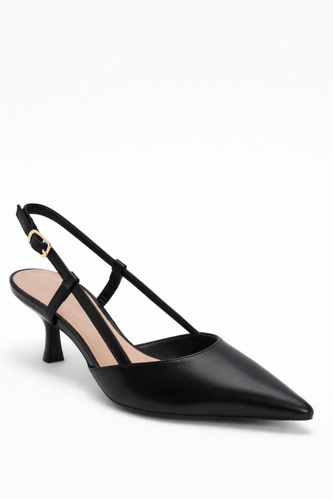 Γόβες Μυτερές Slingback με Διακοσμητική Τόκα & Λάστιχο